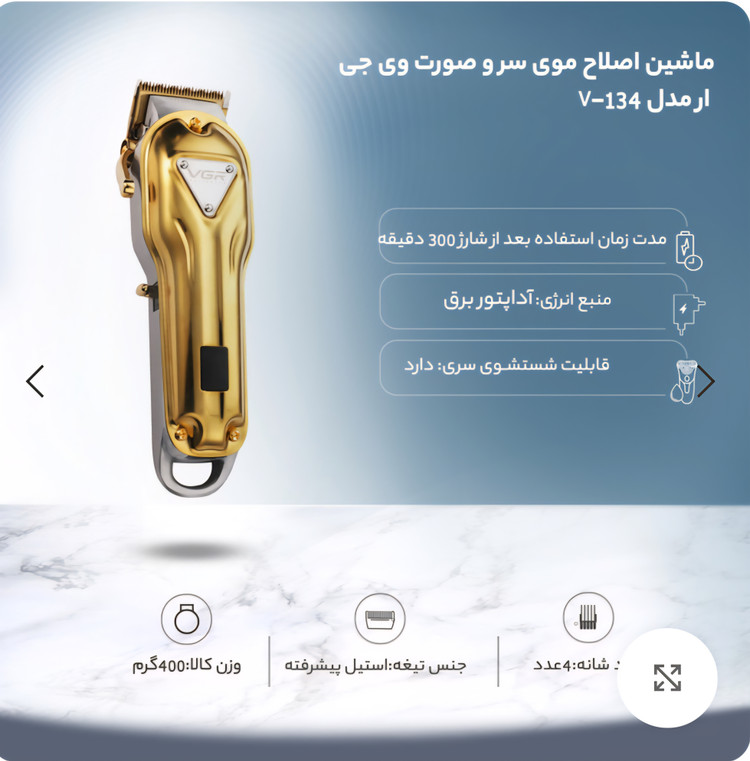 ماشین اصلاح وی جی آر مدل VGR 134 (حجم زن ) تیغه تیتانیوم مخصوص سالن